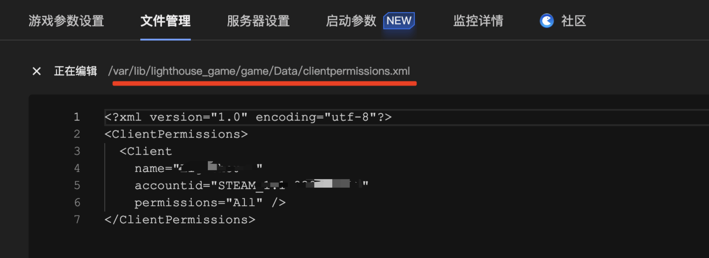 添加或编辑 /var/lib/lighthouse_game/game/Data/clientpermissions.xml 文件,加入如下内容