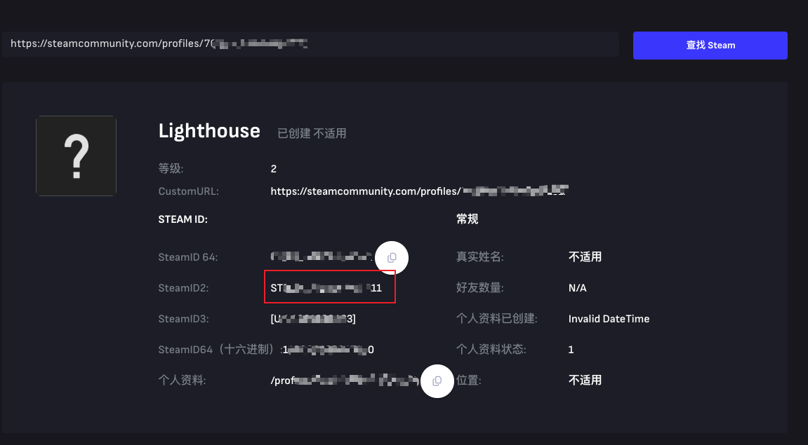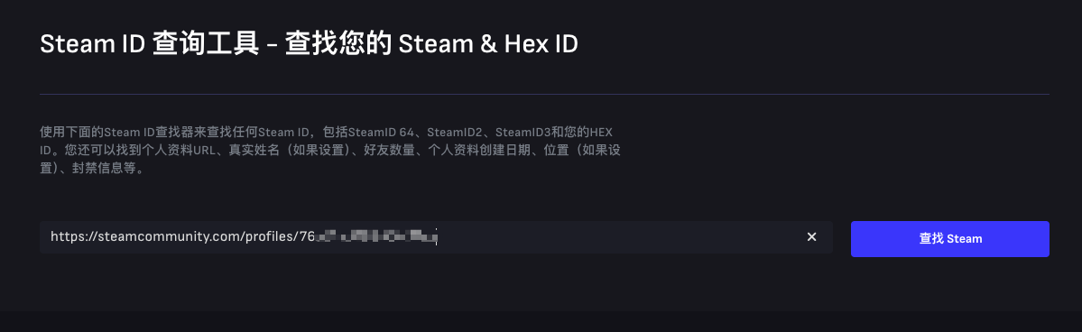粘贴刚才复制的 steam 个人资料的 URL,再点击 “查找Steam”