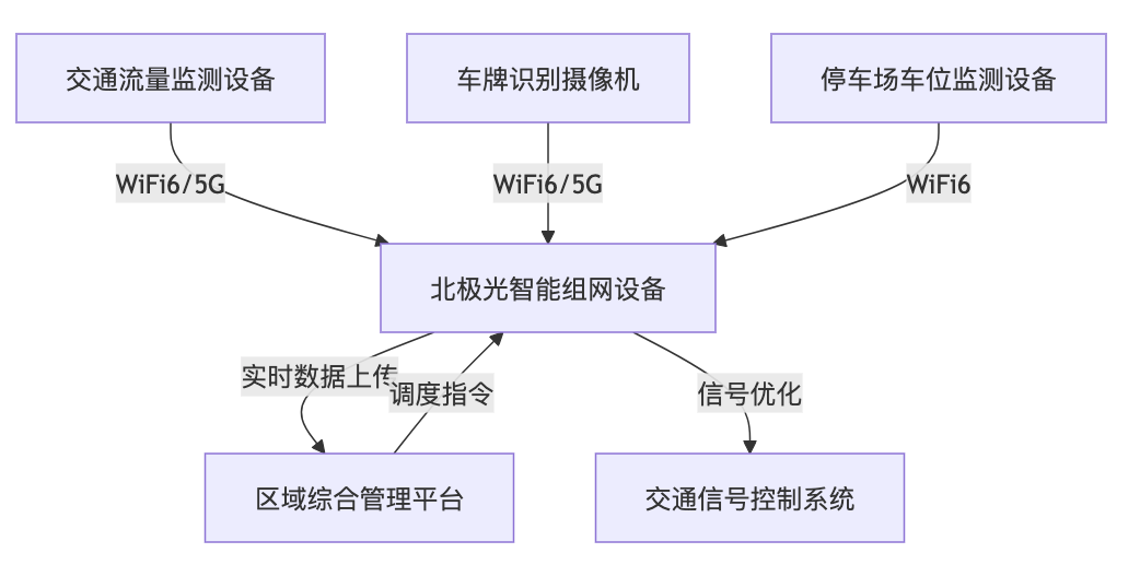 智能组网设备通过连接交通流量监测设备和车牌识别摄像机,实现关键路段的实时监测与数据回传: