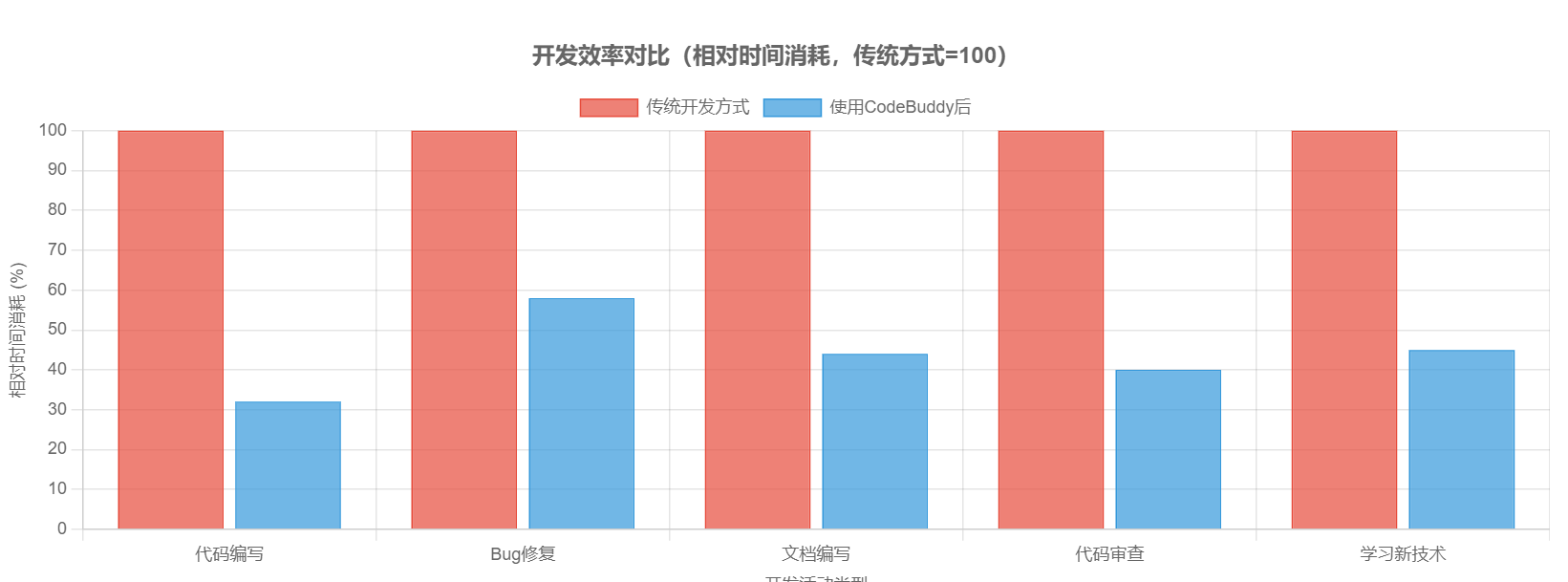 通过对多个项目团队的数据分析,我们可以看到CodeBuddy在不同开发阶段带来的效率提升: