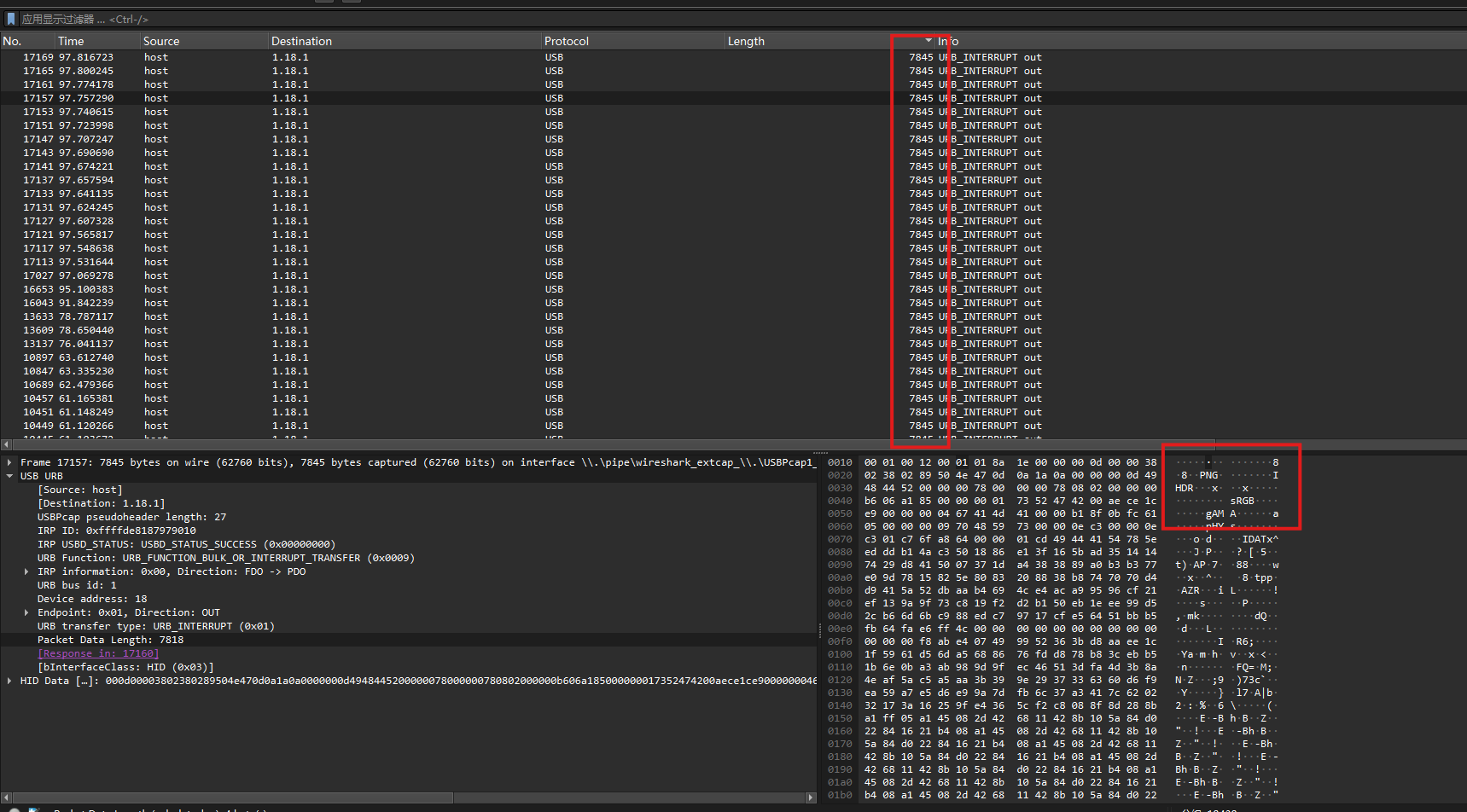 这个不同的值在hid数据的padding中,我们可以通过下面给的过滤器过滤所有的图片数据包。