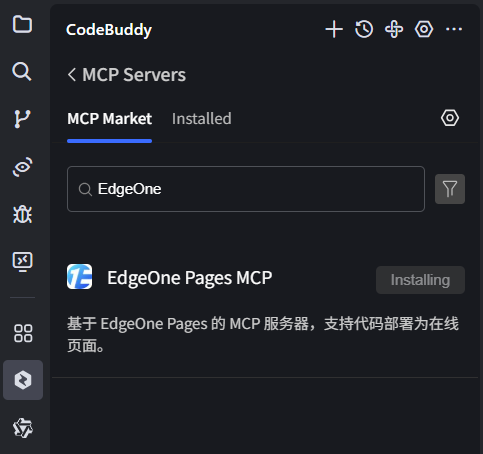 通过CodeBuddy编程插件,安装EdgeOne Pages MCP实现,操作如下: