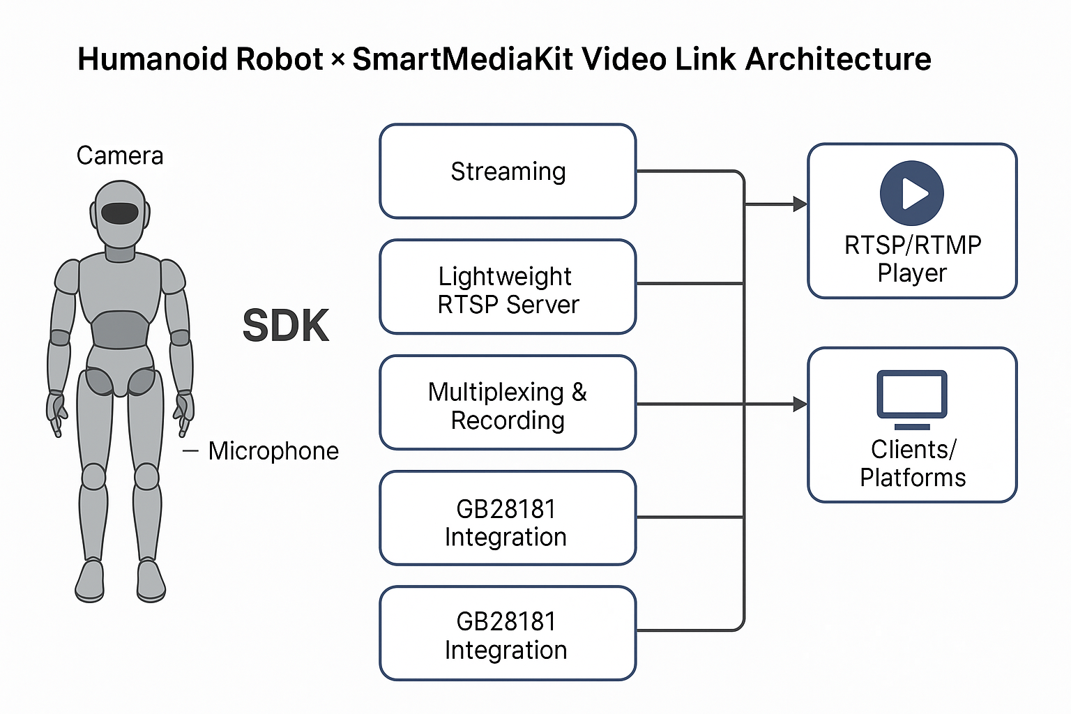 这种“技术孤岛现象”并非机器人行业独有,在音视频领域同样存在。 不同的是,大牛直播SDK(SmartMediaKit)选择了一条更加务实的路线—— 从底层工程出发,走向跨行业的系统底座。 它通过模块化、可对接、可嵌入的体系化设计, 打破了“单点能力无法规模化”的魔咒, 让音视频技术从“工具”升级为各行业智能系统的“神经基础”。
