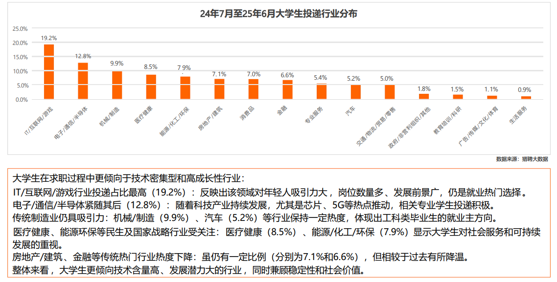 随着近几年,AI技术火爆,以及不得不说的互联网红利余热,大部分人还是偏向于互联网行业、通信和半导体行业进行投递。