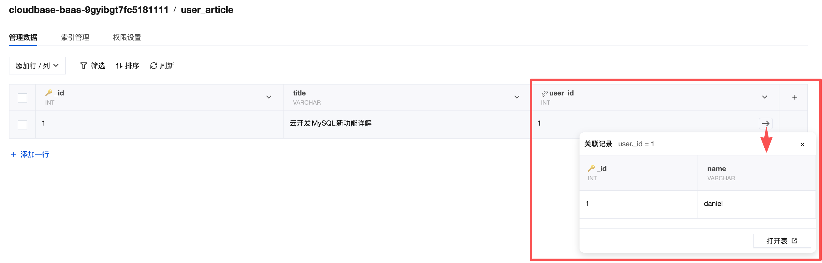 蛋先生:这次还配套上线了在线 MySQL 数据库管理端。功能虽然算不上花哨,但我觉得关联表功能比以前的数据模型要好一些