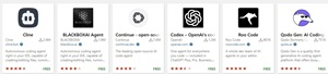 本文列举了 VS Code 市场中 AI 部分的顶级扩展程序,这些扩展在其描述中包含"agent"或"agentic"字样,按安装量排序。由于我们仅搜索这些关键词,来自 GitHub 的前沿工具(如 Copilot、Copilot Chat 和 Pull Requests)虽然领先整体排行榜,但未能入选本次评选。这些工具显然具有智能体功能,例如代理模式等,但由于未包含这些魔法词汇,因此不符合本次评选标准。