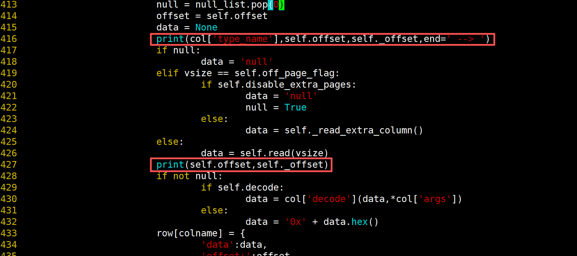 我们还是修改下ibd2sql/innodb_page/index.py, 在数据前后加上便宜量信息: