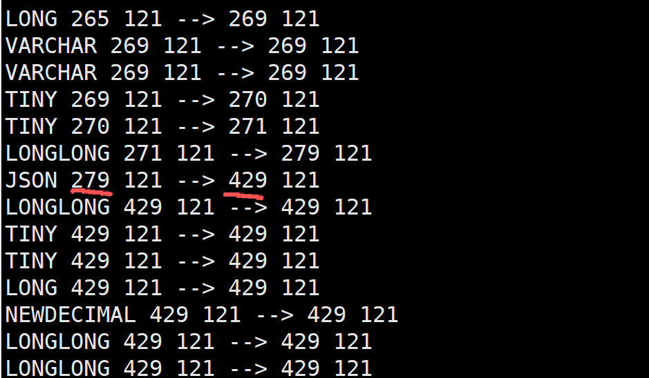 struct.error: unpack requires a buffer of 1 bytes从报错来看是json做解析的时候出问题的(通常是json格式没获取对), json类型我们很早就支持了的, 期间也没有报错过, 写2.x版本的时候,这部分代码是没有动过的. 虽然这是5.7的,而且有好几十个字段, 但我们之前已经修复这个screen的bug了. 难道说是玄学? 于是手动解析瞅瞅.