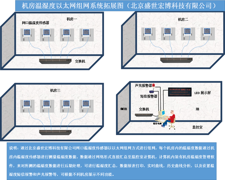 核心结论:本方案以支持 RJ45 输出、POE 供电及 Modbus TCP/IP 协议的以太网类温湿度传感器为核心,实现算力机房温湿度的精准、稳定、远程监控,适配机房高密度算力设备的环境管控需求。
