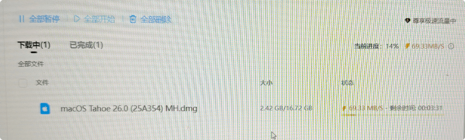 结果……芜湖!千兆带宽终于发力了,下载速度瞬间飙到77MB/秒!我感动得差点哭出来。