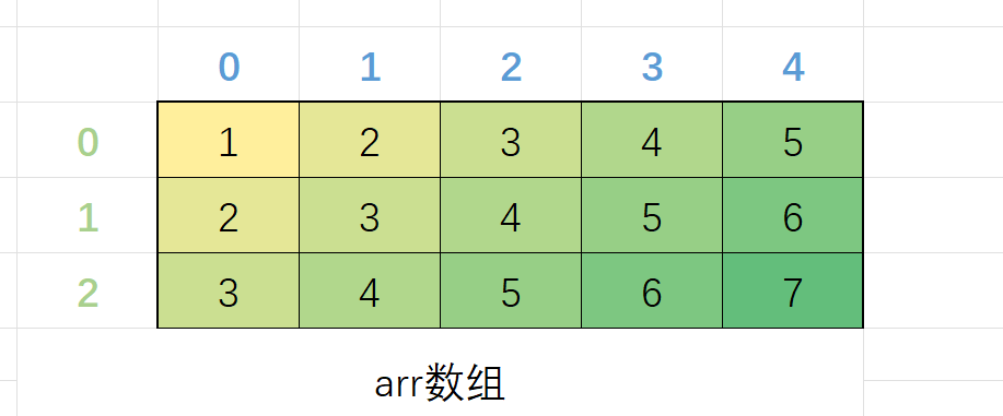 //再+j就是找到这一行里的具体一个元素,然后解引用,其实也就等价于arr[i][j]