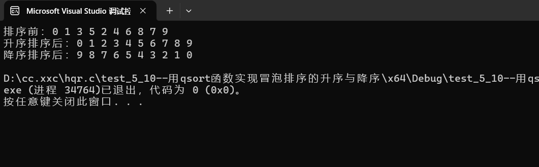 --我们试着用qsort函数排序一下整型数据把(注意看注释)