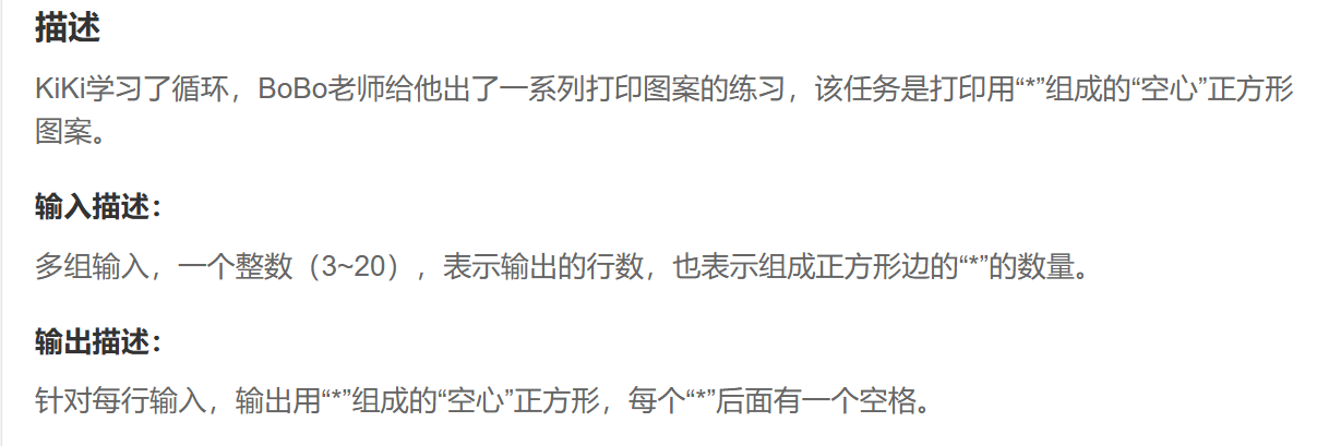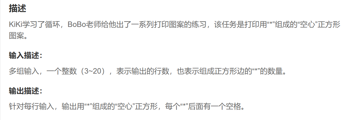 题目链接:空心正方形图案_牛客题霸_牛客网