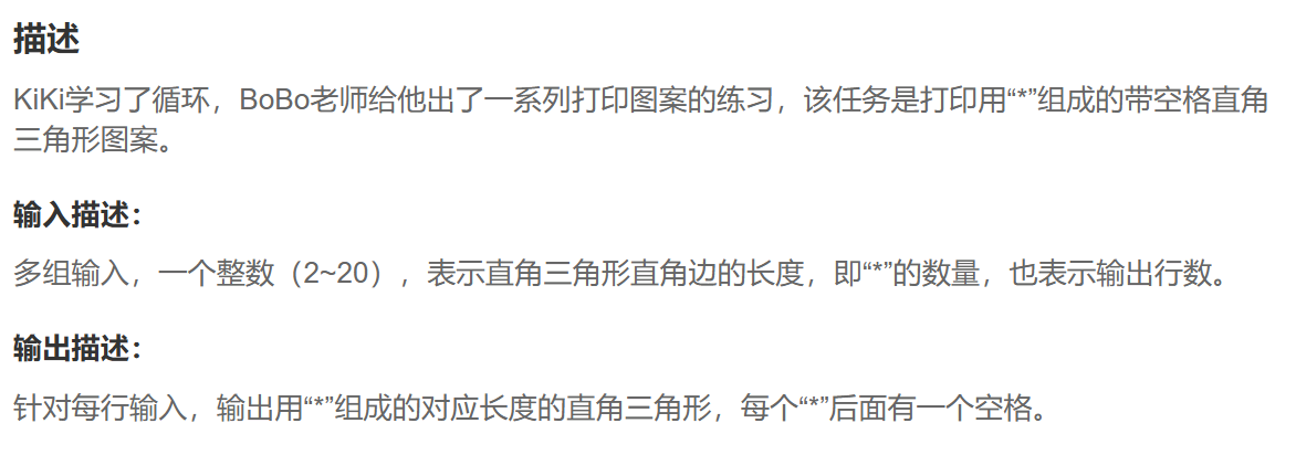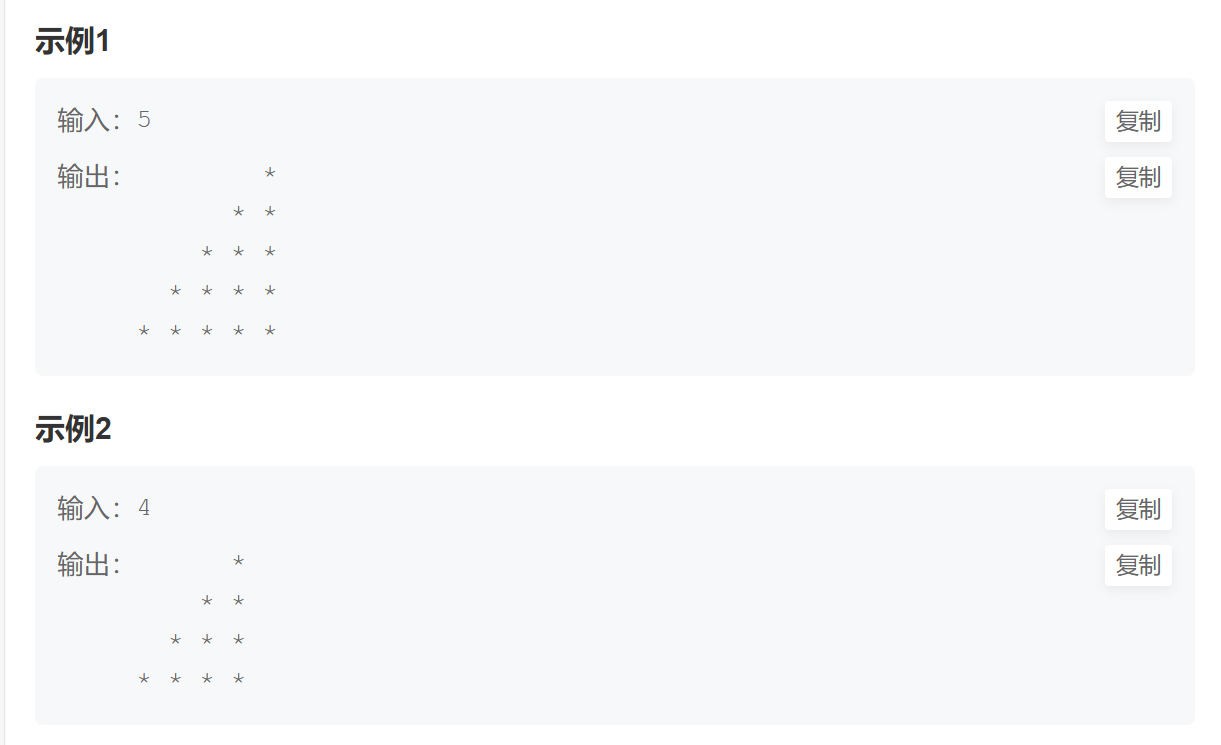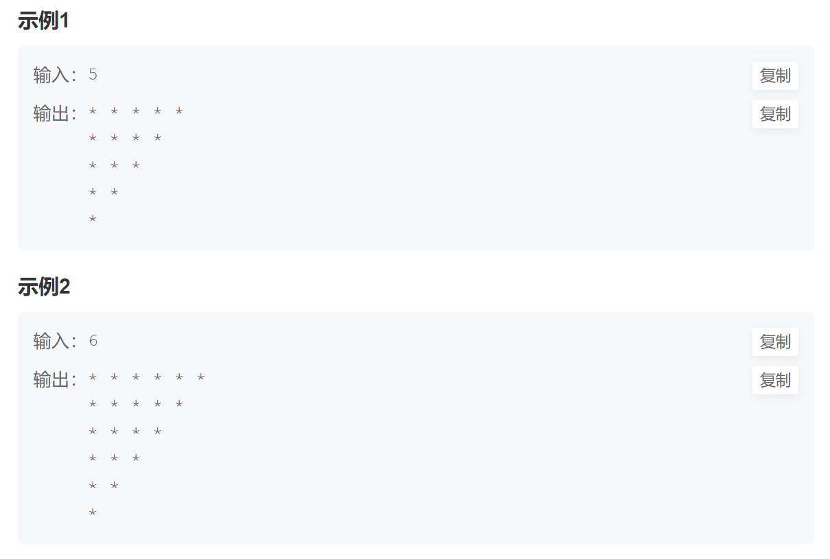 题目链接:带空格直角三角形图案_牛客题霸_牛客网