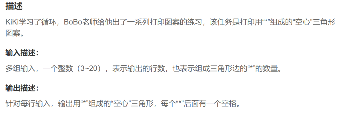 题目链接:空心三角形图案_牛客题霸_牛客网