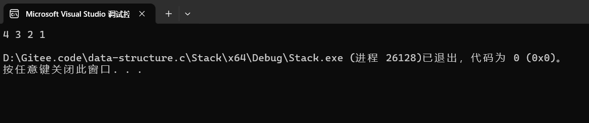 --取栈顶元素实现了之后,我们就可以在test.c中实现取栈顶元素,打印再出栈的操作了,可以观察一下我们栈的先进后出特性