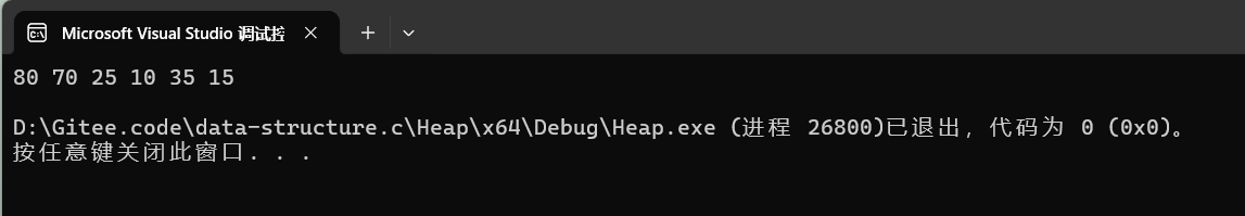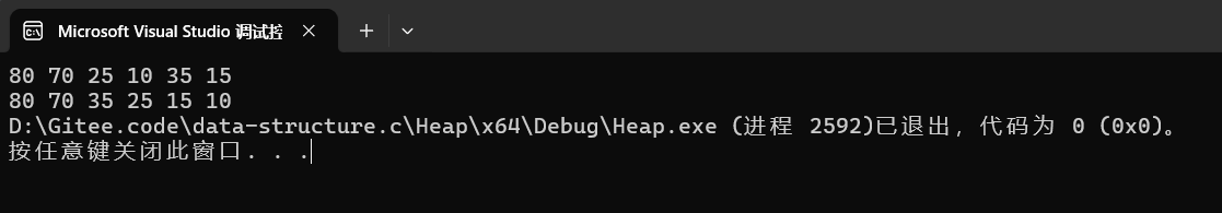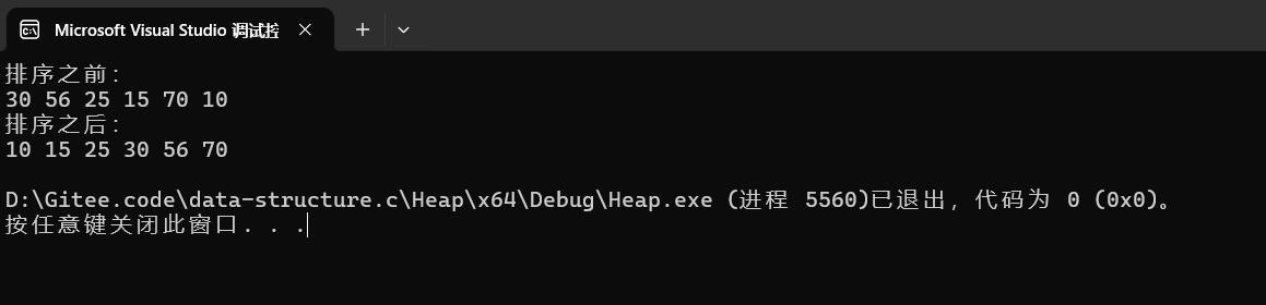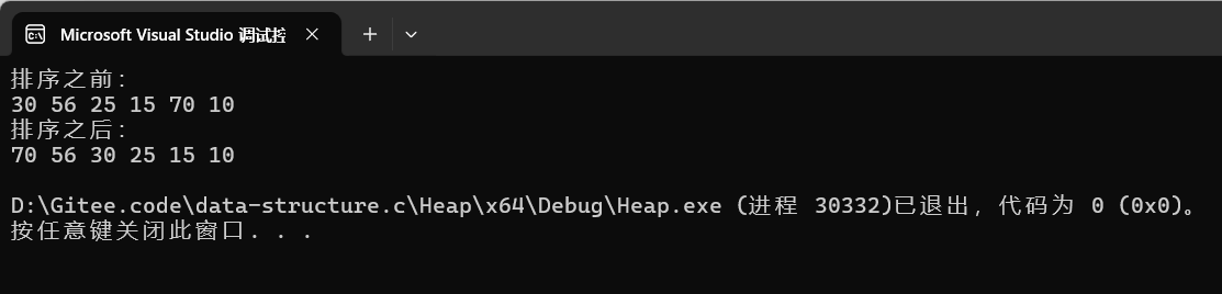 }//我们会发现是有序的,但这个只是将数据在终端顺序打印出,那我们能不能试着实现堆排序呢