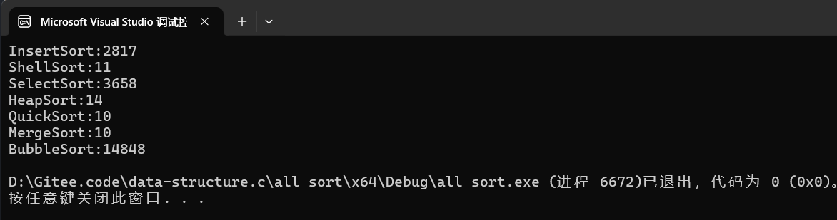 --我们实现完了这么多种排序,我们还是通过测试函数看看它们的性能对比吧