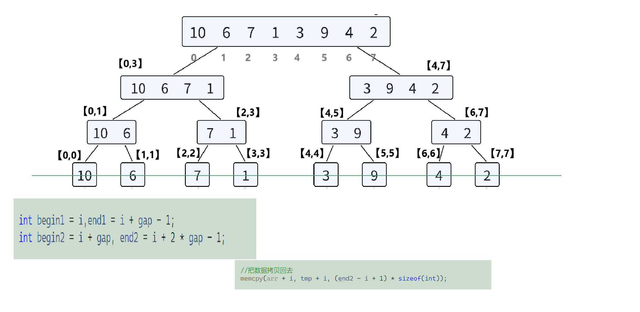 int begin2 = i + gap, end2 = i + 2 * gap - 1;