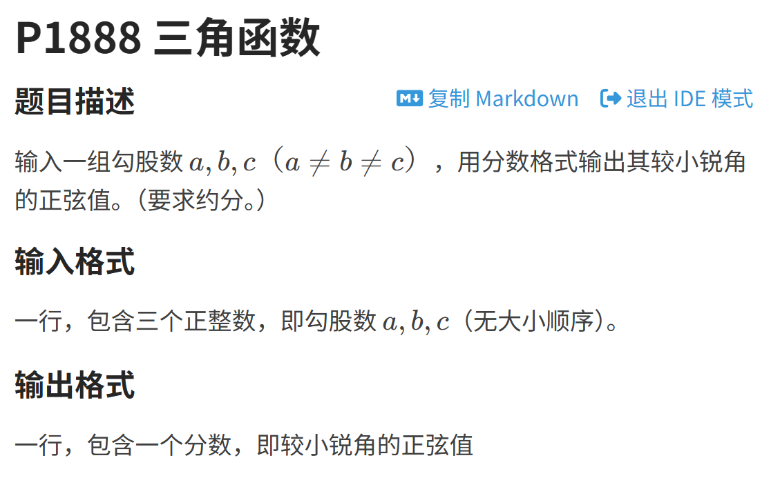 题目链接:P1888 三角函数 - 洛谷