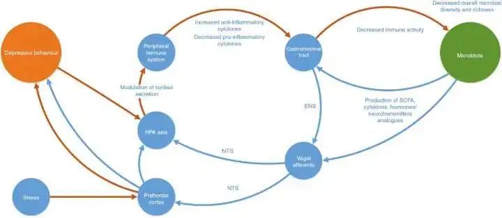 当然,这里的脑肠轴,不是一些古书里认为的肠道直接影响大脑,而是微生物学的概念。
