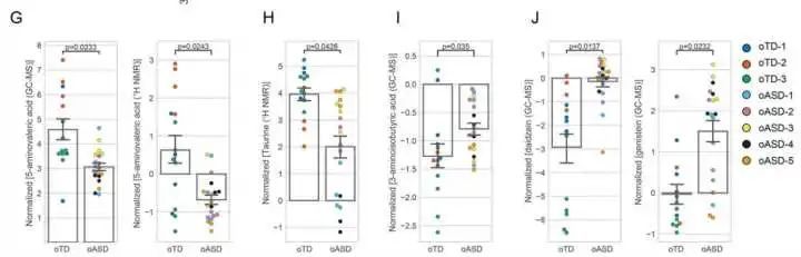基于我们已有的认知,很难有肠道微生物直接进入大脑,更多的是通过肠道微生物的代谢产物来影响,于是作者就对肠道物质和血清进行了非靶向代谢组学分析,结果发现,有27种代谢产物在自闭症小鼠中发生了明显改变,包括GABA和甘氨酸受体激动剂/抑制剂等等,这些研究和之前已有的认知相符。