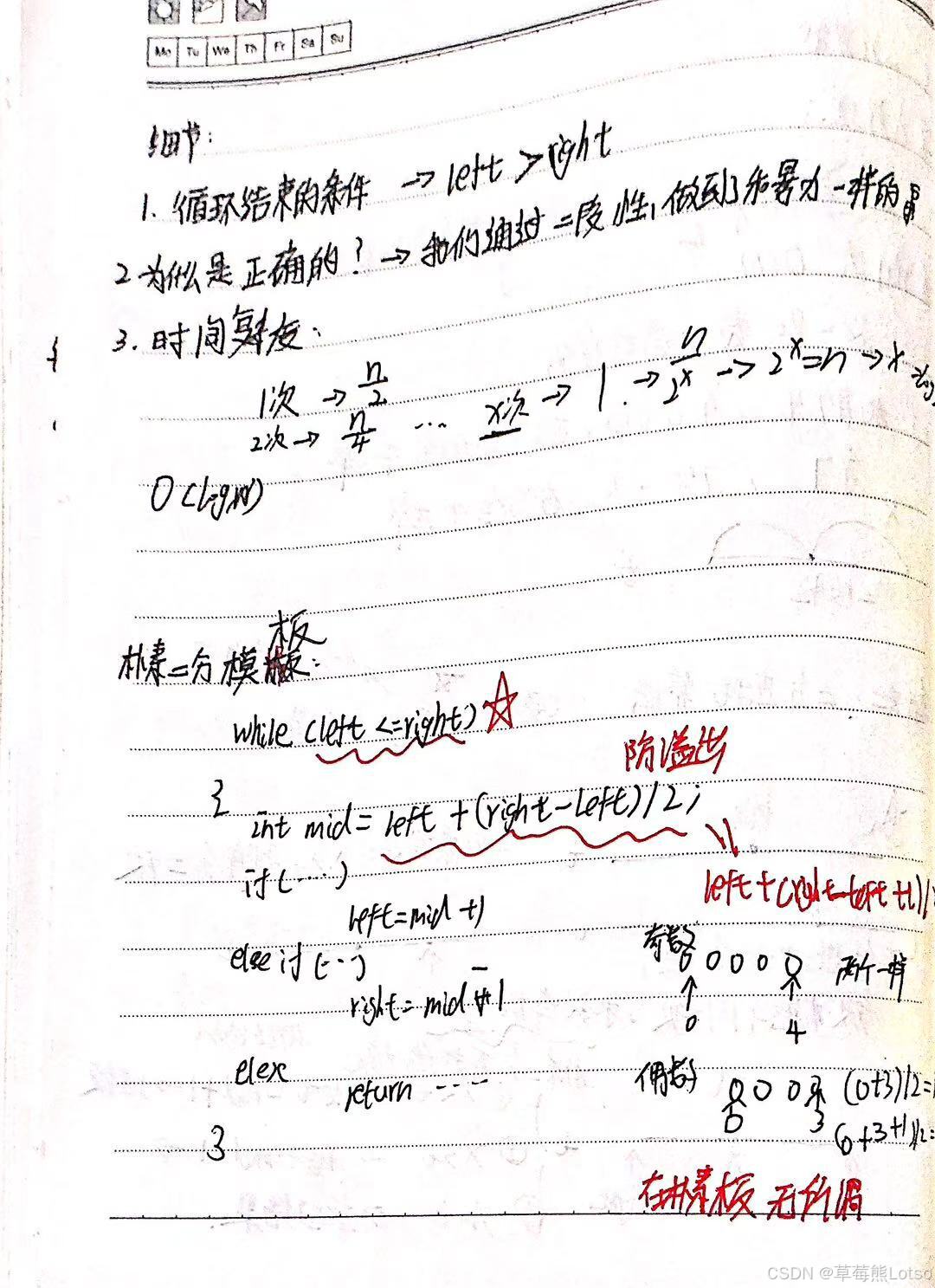 要搜索的区间,根据分析问题来写出二分查找算法的代码。 要分析题意,确定搜索区间,不要死记模板,不要看左闭右开什么乱七⼋糟的题解