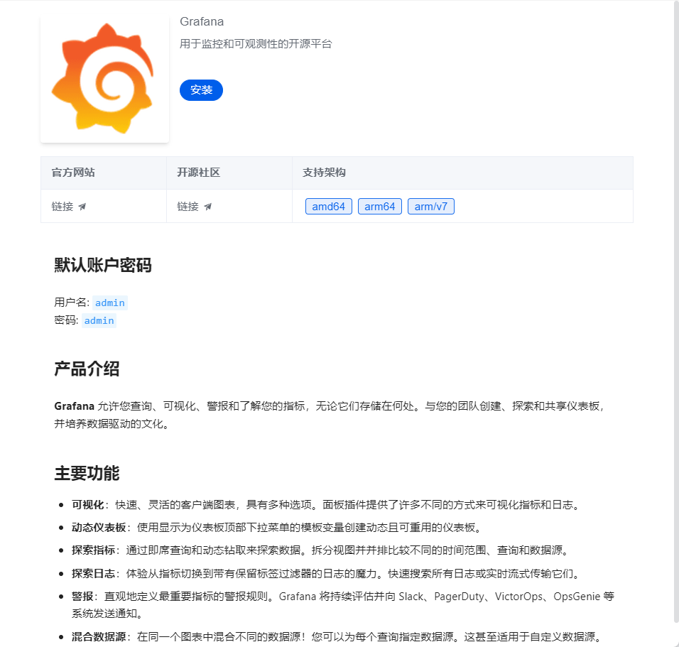Docker | 可视化管理镜像、容器、卷;支持容器生命周期操作(运行、停止、删除)及日志查看 |