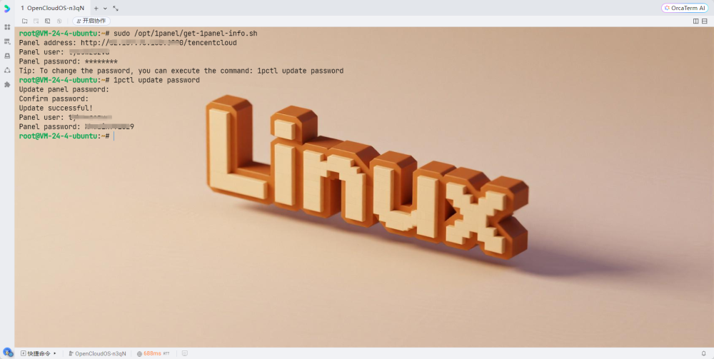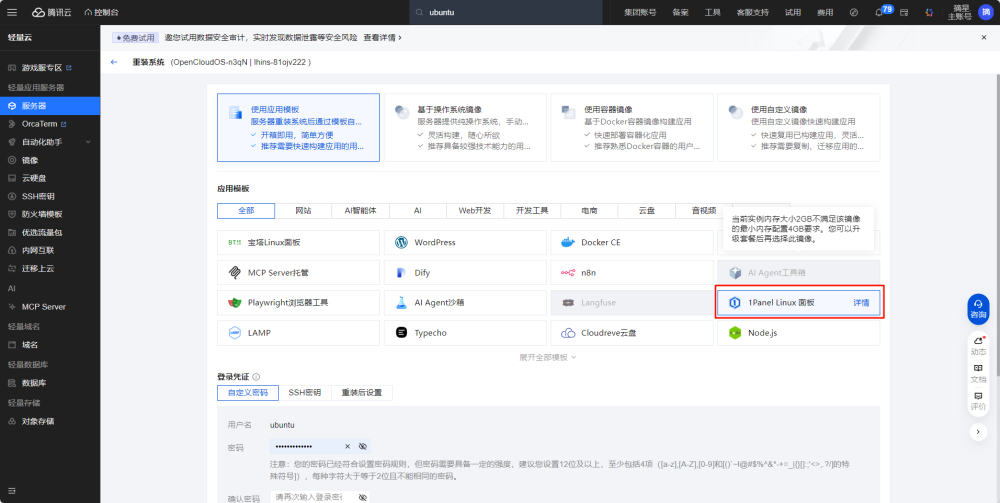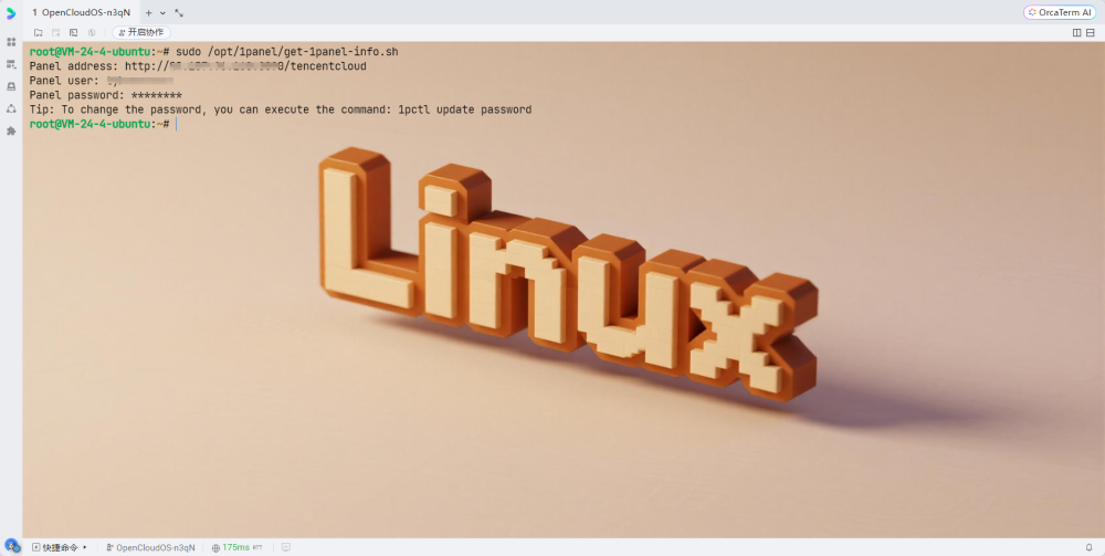 重装完毕之后,在应用管理中查看1Panel的面面登录地址信息