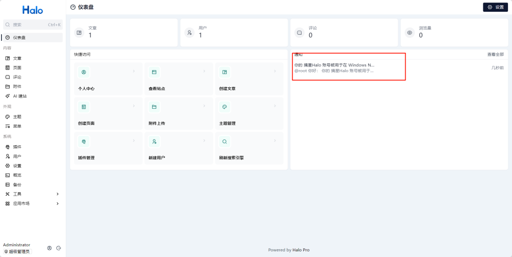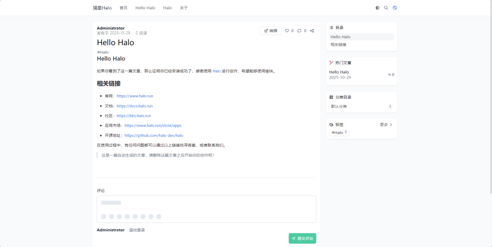这里我简单介绍一下Halo的功能,感兴趣的小伙伴可以自行体验: