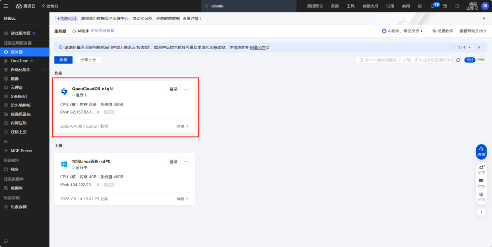 进入到腾讯云LightHouse控制台:https://console.cloud.tencent.com/lighthouse/