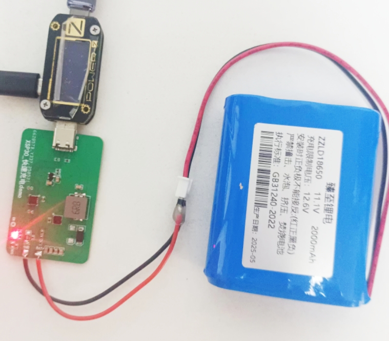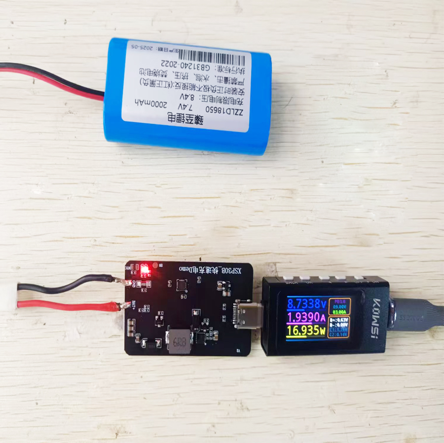 使用XSP30C电路充3串12.6V容量5200mAh锂电池,使用PD 充电器输入功率最大27W,充电电流最大2A, 充满电只需4小时左右