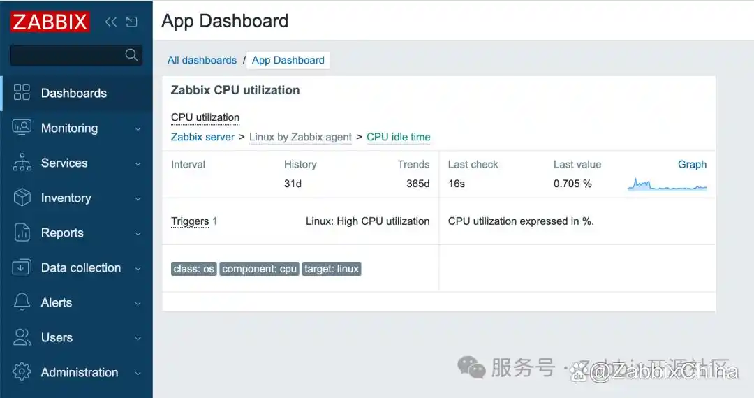 此外新版本还增加了History 小组件,Item的历史数据也可在Dashboard中展示,方便查看历史指标。
