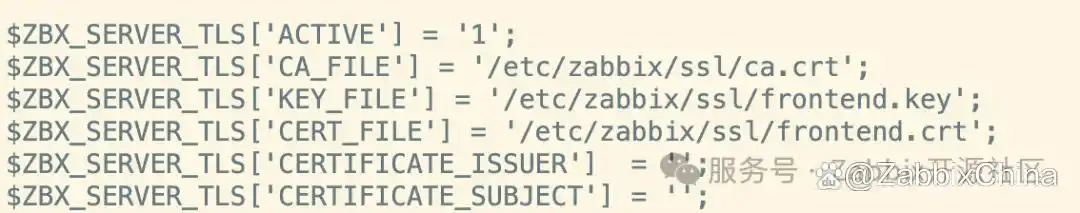 新版本中Zabbix前端与Zabbix server通行支持了TLS加密,可在zabbix server配置文件中配置TLS相关配置即可