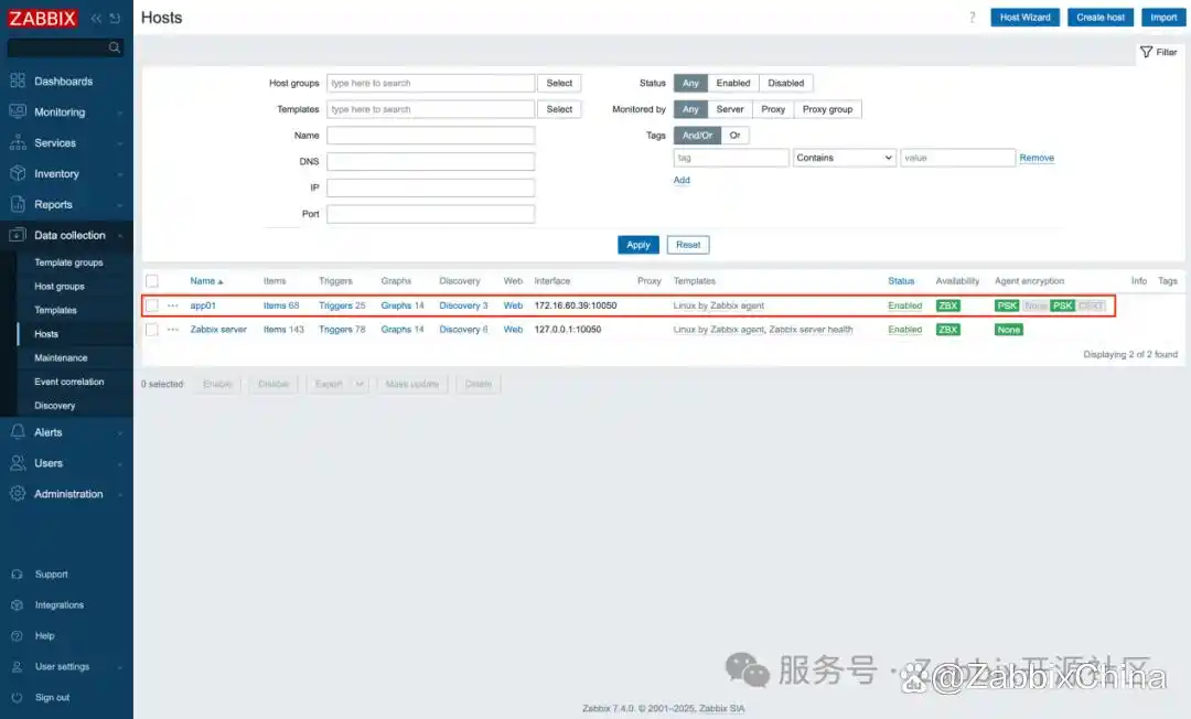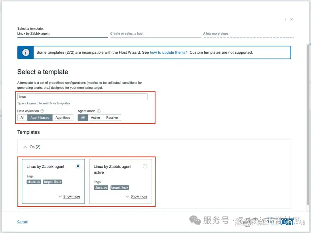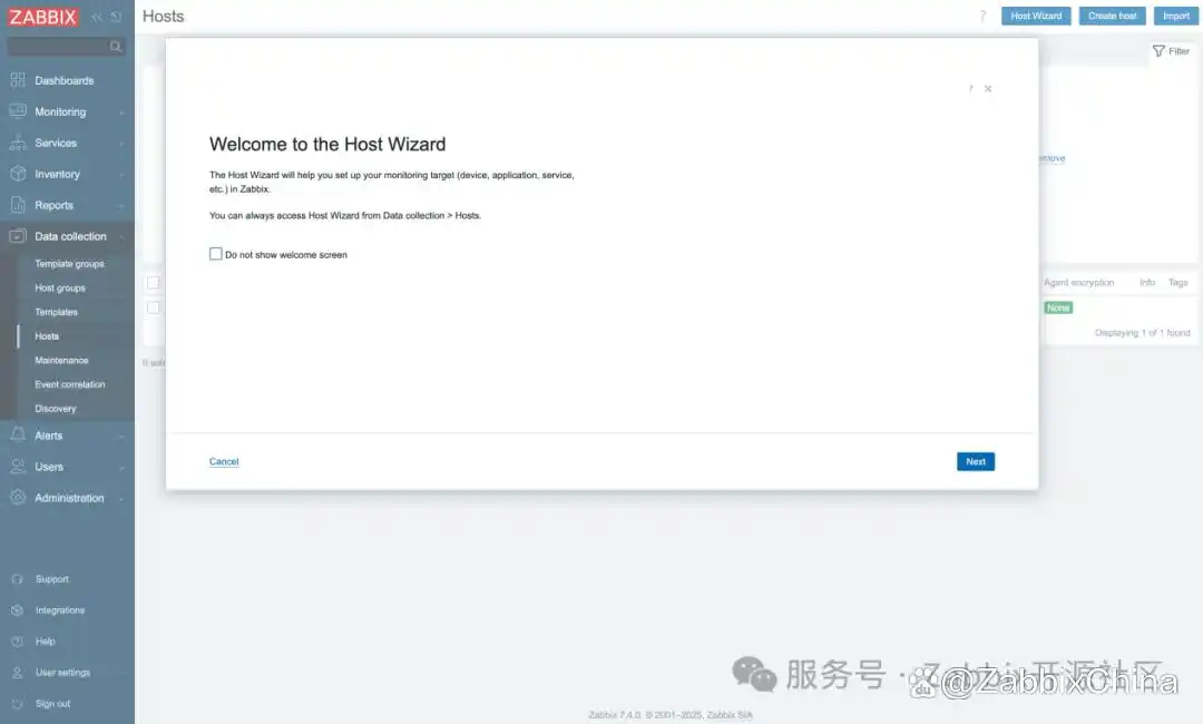Zabbix 7.4 版本增加了主机向导,用户可通过向导方式完成zabbix agent安装、模版关联、主机添加等操作,简化了新主机或现有主机的配置。