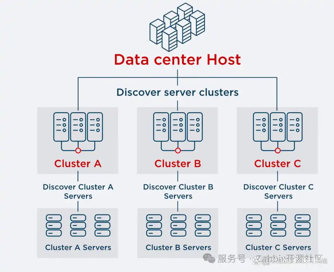新版本中支持了不限制级别的发现。因此可以配置发现规则实现以下复杂的场景:发现主机集群,再发现集群的主机,再发现主机上的数据库,数据库表空间等,大大简化了指标的配置。