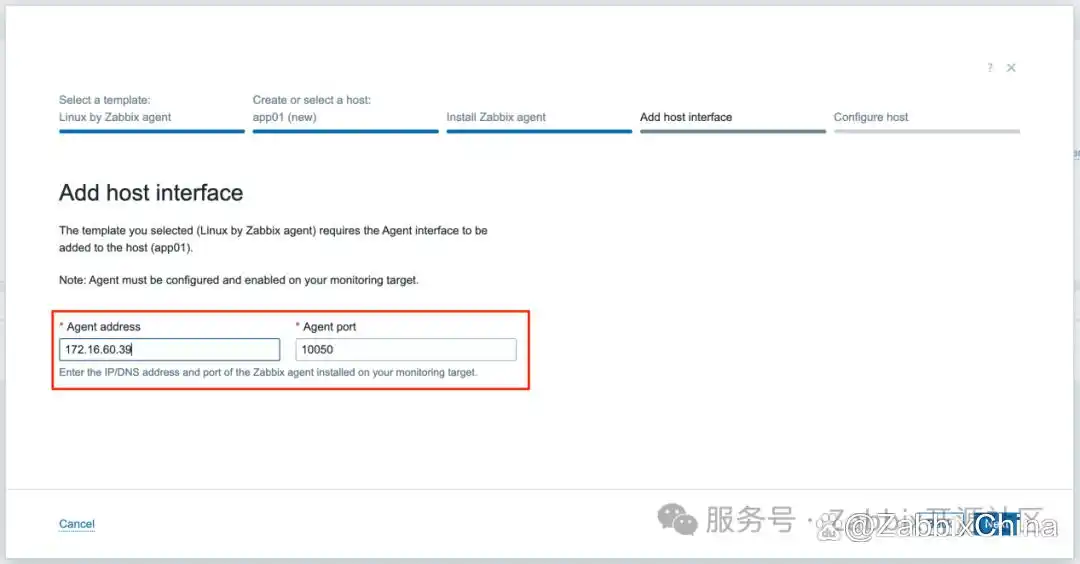 添加主机Interface地址(本次为172.16.60.39)及端口10050