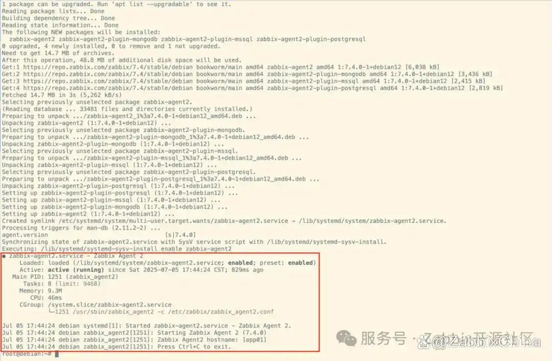 ssh登陆要安装zabbix agent的服务器,粘贴命令回车,即可完成zabbix agent的安装