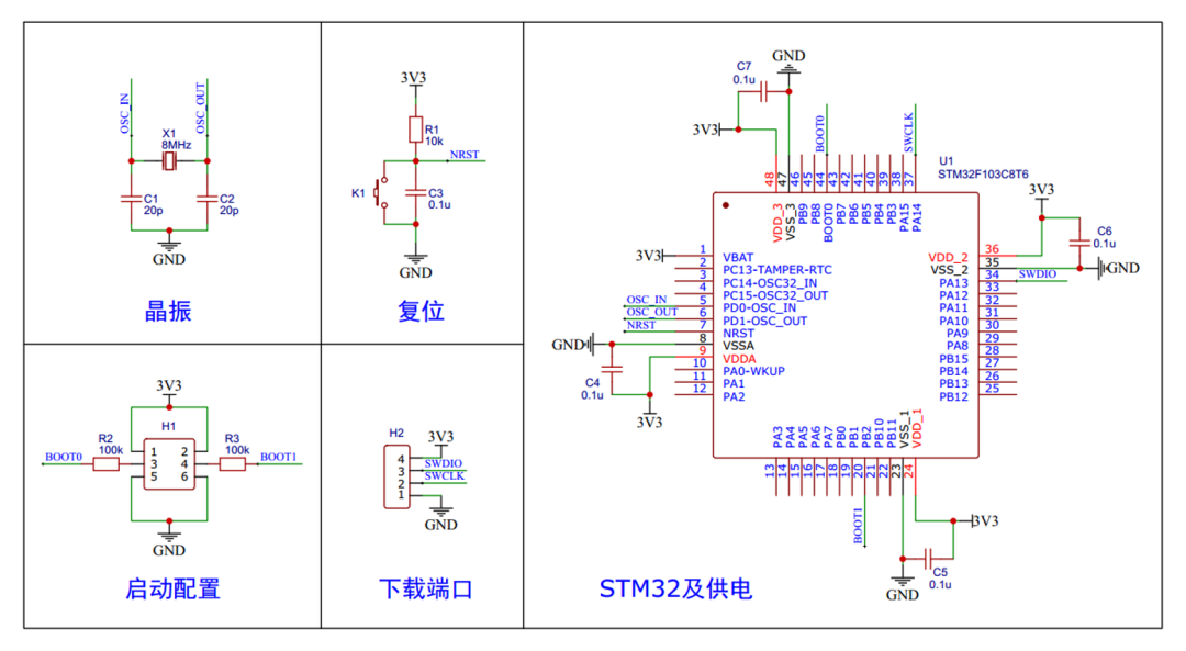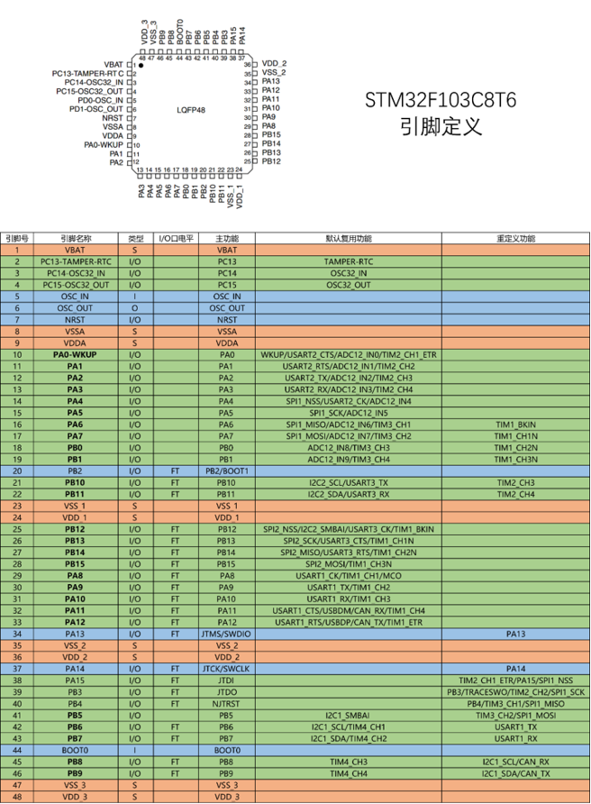 系列:STM32F1 内核:ARM Cortex-M3 主频:72MHz RAM:20K(SRAM) ROM:64K(Flash) 供电:2.0~3.6V(标准3.3V) 封装:LQFP48