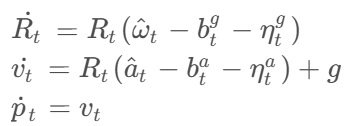 IMU的动力学模型在全局坐标系下为: