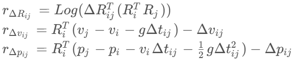 - 数学形式: 构建一个残差项,表示预积分测量值与状态预测值之间的差异。