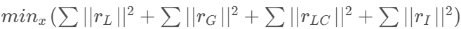 - 数学形式: 通过匹配得到一个相对位姿变换 T_odom,残差即当前状态估计的位姿 T_j 与匹配得到的位姿 T_odom 之间的差异(在李群上计算)。