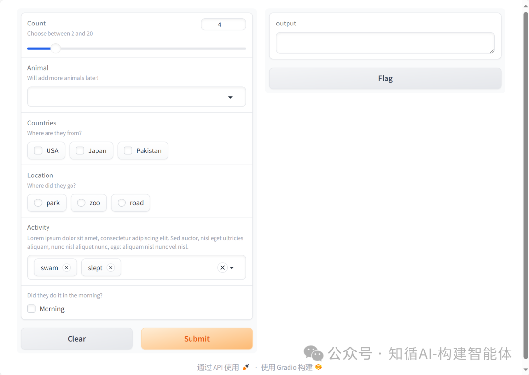 )Gradio提供了丰富的输入输出组件: