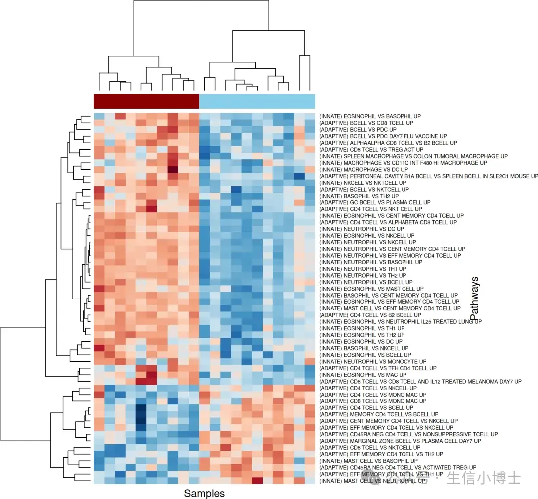GSVA::gsva() 同一接口里跑 method="ssgsea" 或 "gsva",两者都算一遍,选择更稳定/更符合生物学的。实战要点(避免“伪浸润”)