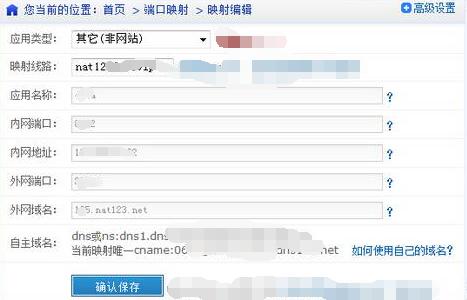 在本机物理上,或VM机里面,或所在局域网另台互通主机上,使用nat123客户端添加个映射设置,选择合适的映射类型(如web访问的,按需选择80、或443、或非80网站),内网地址端口填写对应目标访问的内网Ip端口,外网域名默认生成随机二级域名(可修改二级字符,或修改使用自己的域名)。