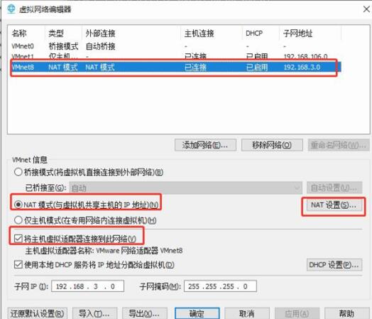 在VM的虚拟机对应设置->网络适配器->NAT模式。