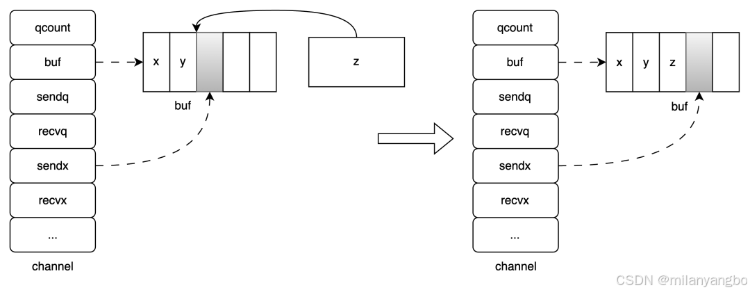 buf unsafe.Pointer // 指向 dataqsiz 长度的数组