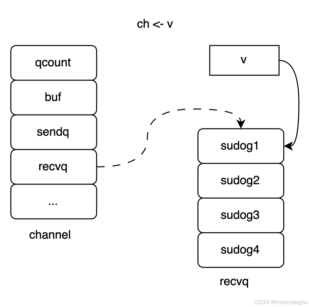 1)如果等待接收的队列recvq中存在Goroutine,那么直接把正在发送的值发送给等待接收的Goroutine。