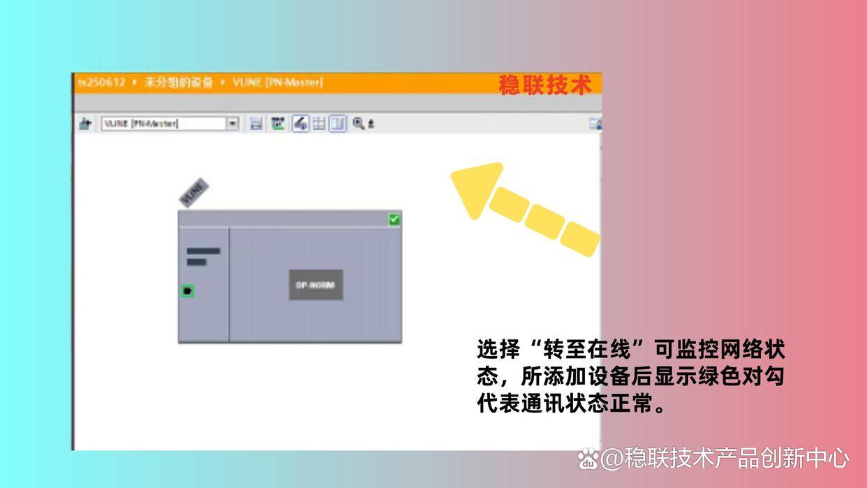 ⑩ 选择“转至在线”可监控网络状态,所添加设备后显示绿色对勾代表通讯状态正常。