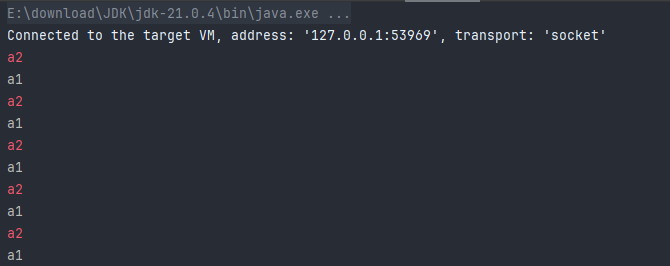 }当时阅读完 out 的源码后,我就在思考,会不会是两种不同的输出流导致线程冲突了。于是我使用 setErr 将 err 的输出流重定向为 out。再试一次结果: